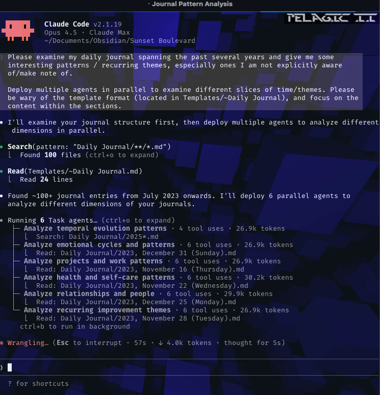 Specifically: I use Claude Code to examine my local files and surface different sources - I think an image would better illustrate how I actually interrogate my mind (this is a chat between me and Opus 4.5):